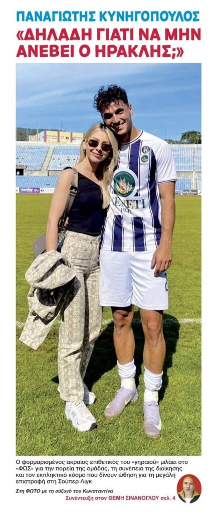 Αυτό δεν είναι κάτι που έχει περάσει απαρητήρητο και η γνωστή εφημερίδα «Φως των Σπορ» τίμησε τον Ηρακλή και τον ποδοσφαιριστή του με μια συνέντευξη και μια ευδιάκριτη θέση στο πρωτοσέλιδο του σημερινού (16/10) φύλλου.