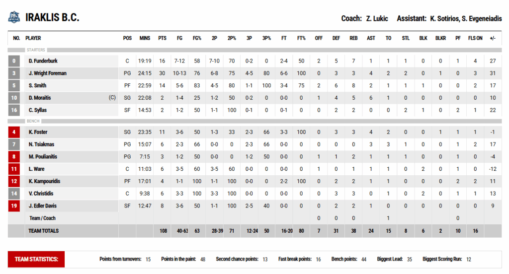 Για το τέλος αφήσαμε τον καινούργιο, τον Edler Davis, ο οποίος έπαιξε σχεδόν 13′ και πέτυχε 8 πόντους, δείχνοντας ότι μπορεί να συνεισφέρει στην ομάδα τόσο αμυντικά όσο και από το τρίποντο.