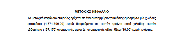 Η πρώτη αύξηση μετοχικού κεφαλαίου