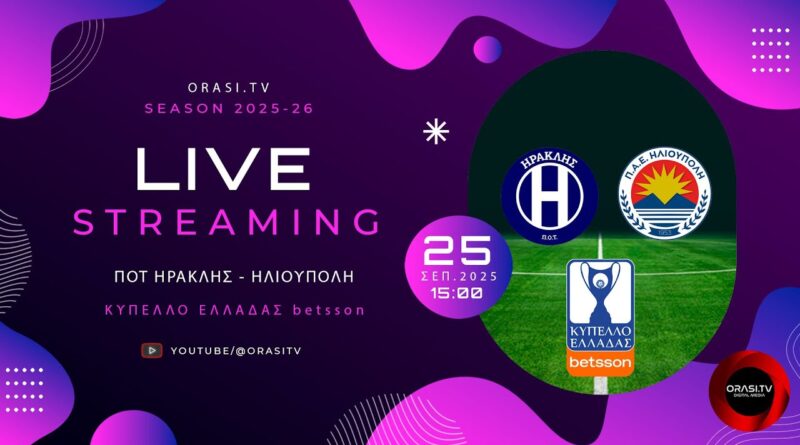 Όπως γράψαμε, τον αγώνα του Ηρακλή με την Ηλιούπολη θα μεταδόσει το Orasi TV στο YouTube. Παρακάτω μπορείτε να δείτε το λινκ και να παρακολουθήσετε τον αγώνα.