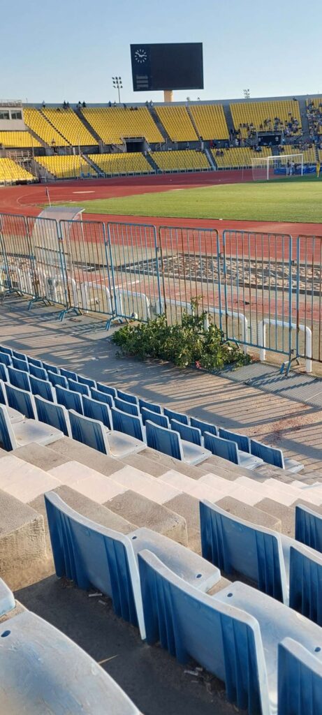 Τέλος, στα δημοσιογραφικά αλλά και γενικότερα στις κερκίδες η κατάσταση είναι άθλια. Όλο το γήπεδο είναι βρώμικο, οι κερκίδες αλλά και οι θέσεις στα δημοσιογραφικά είναι μέσα στην σκόνη. Επίσης στα δημοσιογραφικά εχθές δεν υπήρχε ίντερνετ!