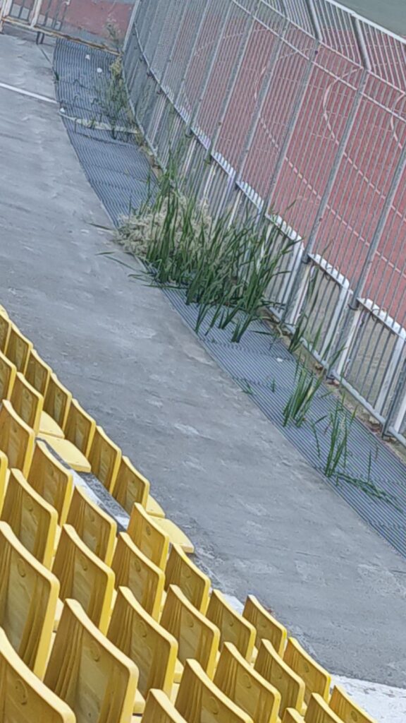 Επίσης, στις υδρορροές γύρω από το ταρτάν, στα όρια με τις κερκίδες, έχουν φυτρώσει… δέντρα! Συκιές, καλαμιές και άλλα φυτά αποτελούν την χλωρίδα του ενεργού οικοσυστήματος του Καυτανζογλείου. Προφανώς οι υδρορροές είναι τόσο καιρό ακαθάριστες, που έχει μαζευτεί χώμα και αυτό σε συνδυασμό με το νερό και τους σπόρους που μεταφέρονται με τον αέρα και όχι μόνο, έχουν δημιουργήσει ιδανικές συνθήκες ώστε το Καυτανζόγλειο να γίνει το πρώτο πράσινο στάδιο στην Ελλάδα. Κυριολεκτικά όμως.