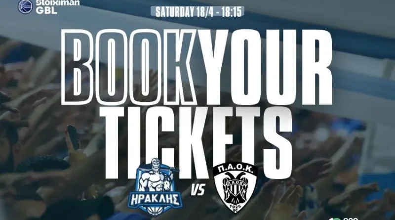 Η ΚΑΕ Ηρακλής ανακοινώνει ότι από σήμερα (14/04) τίθενται σε κυκλοφορία τα εισιτήρια για το παιχνίδι με τον ΠΑΟΚ, που θα γίνει το Σάββατο 18 Απριλίου στις 18:15, στο Ιβανώφειο, στο πλαίσιο της 25ης αγωνιστικής της Stoiximan Greek Basketball League.