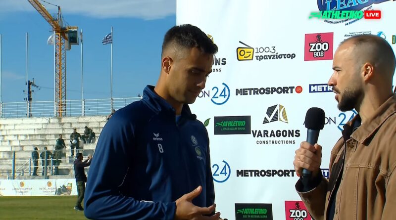 «Ήταν πολύ σημαντικό το παιχνίδι για εμάς, πόσο μάλλον αφού έχασε από ό,τι έμαθα η Νίκη Βόλου, οπότε περνάμε πρώτοι στην βαθμολογία. Είναι πολύ σημαντικό κυρίως για την ψυχολογία μας, γιατί ένα παιχνίδι είναι, μπορεί να μας περάσει ξανά κατευθείαν αν χάσουμε ή οτιδήποτε. Χαίρομαι πολύ που κατάφερα να βοηθήσω την ομάδα μου και ελπίζω να το κάνω σε κάθε παιχνίδι.»